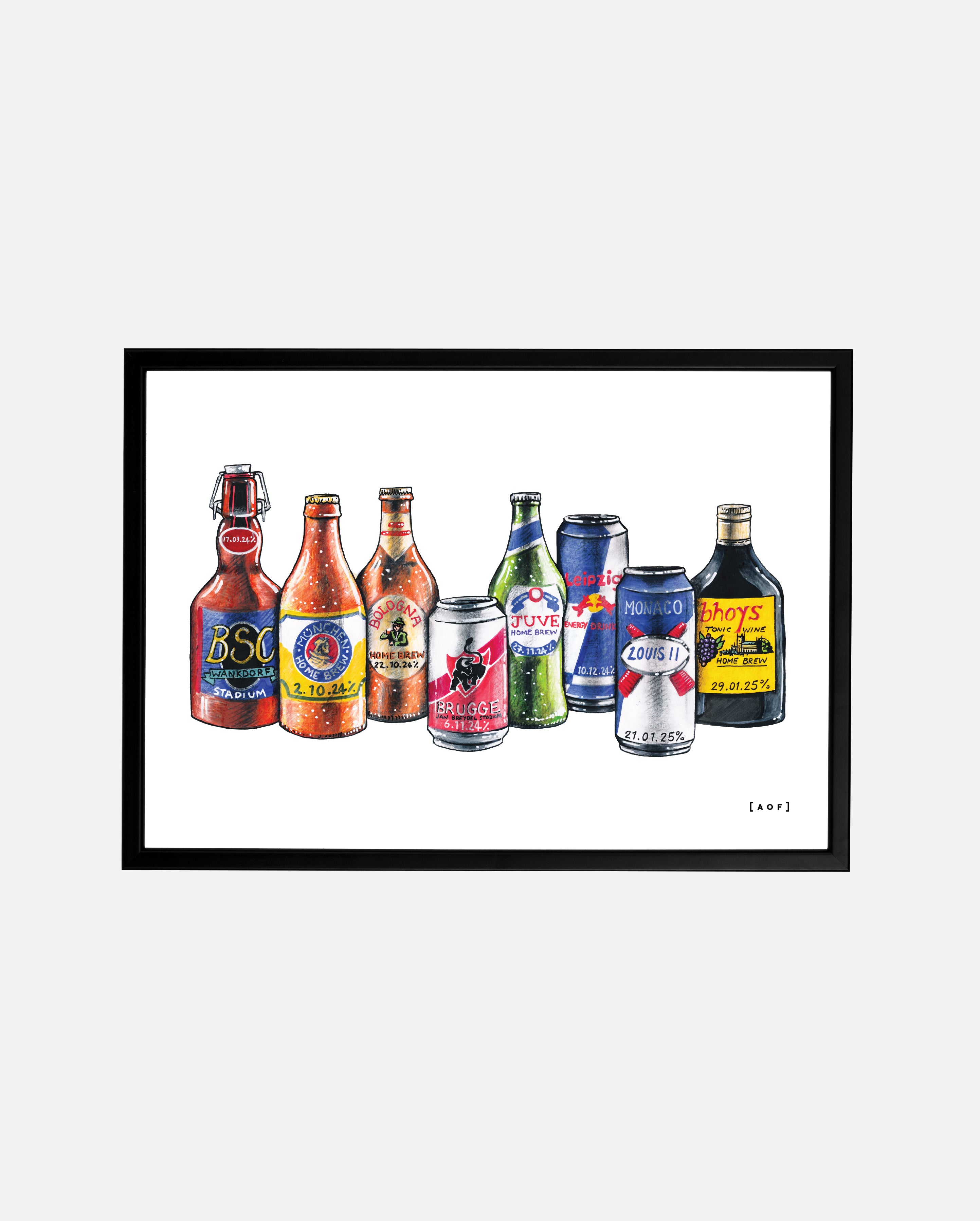 - Framed versions use a black wood frame made in the UK.