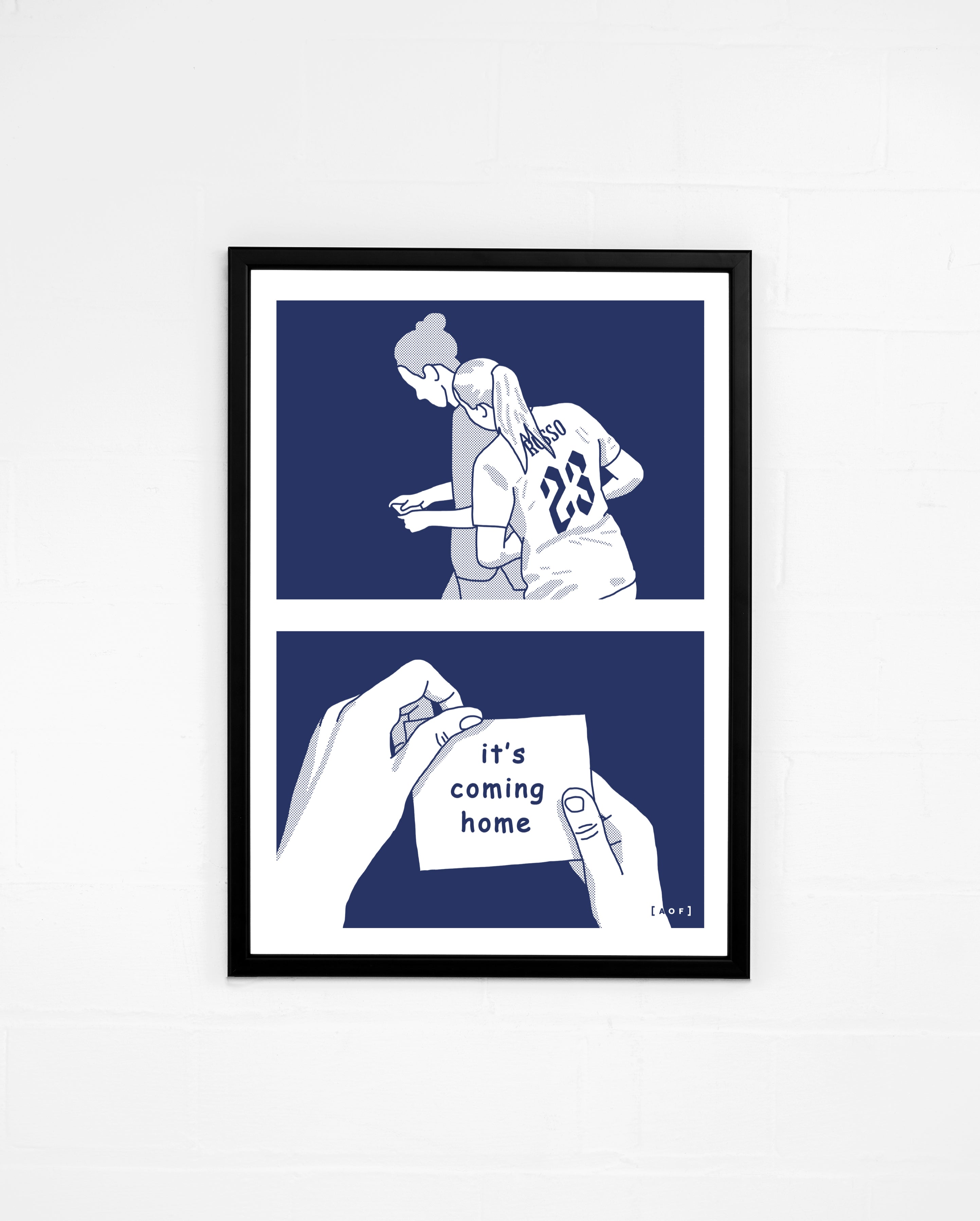 - Framed versions use a black wood frame made in the UK.